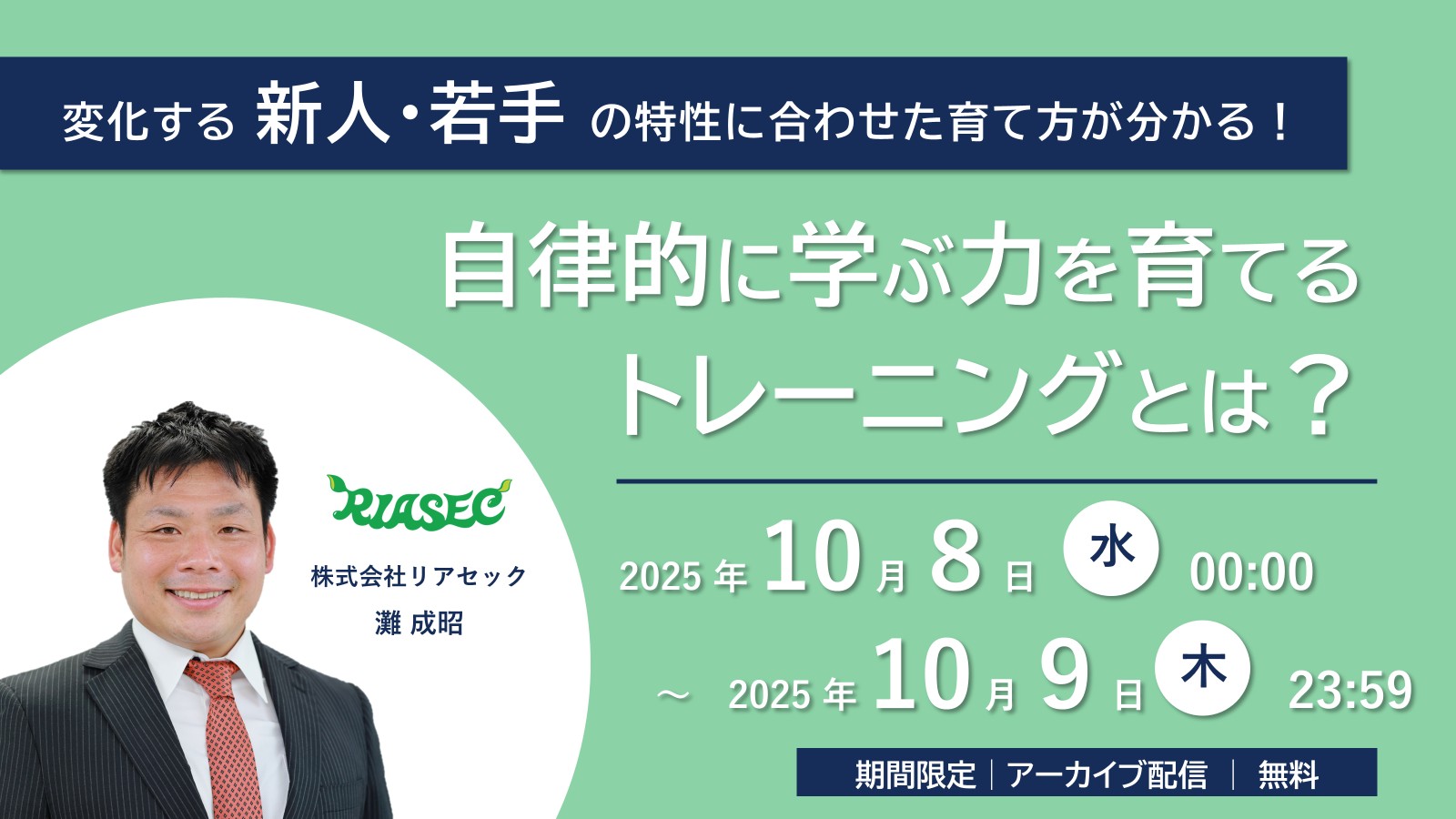 本セミナーでは、新人・若手の傾向や特性に合わせて、彼らが仕事を通じて自ら学び、成長していく力を育てるための具体的なヒントを提供します。彼らが求める「どこでも通用する力」の育て方や、一人ひとりに合った育成の進め方 について分かりやすく解説します。
