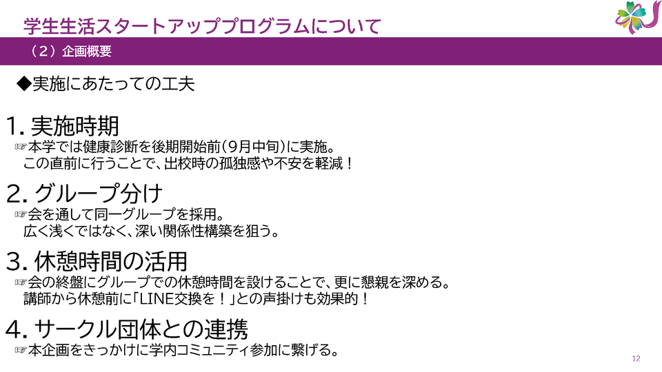 など、コロナ禍において学生同士の関係性の希薄さが課題となる中、参考にしていただけることが多いだろう。