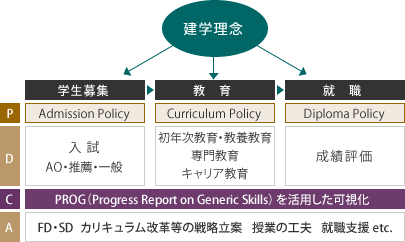 ジェネリックスキルは主に汎用的なコンピテンスで構成されているため、各大学ごとの建学の理念に抵触することもなく、大学を問わず、独自の教育体系の中にスムーズに組み込むことが可能です。